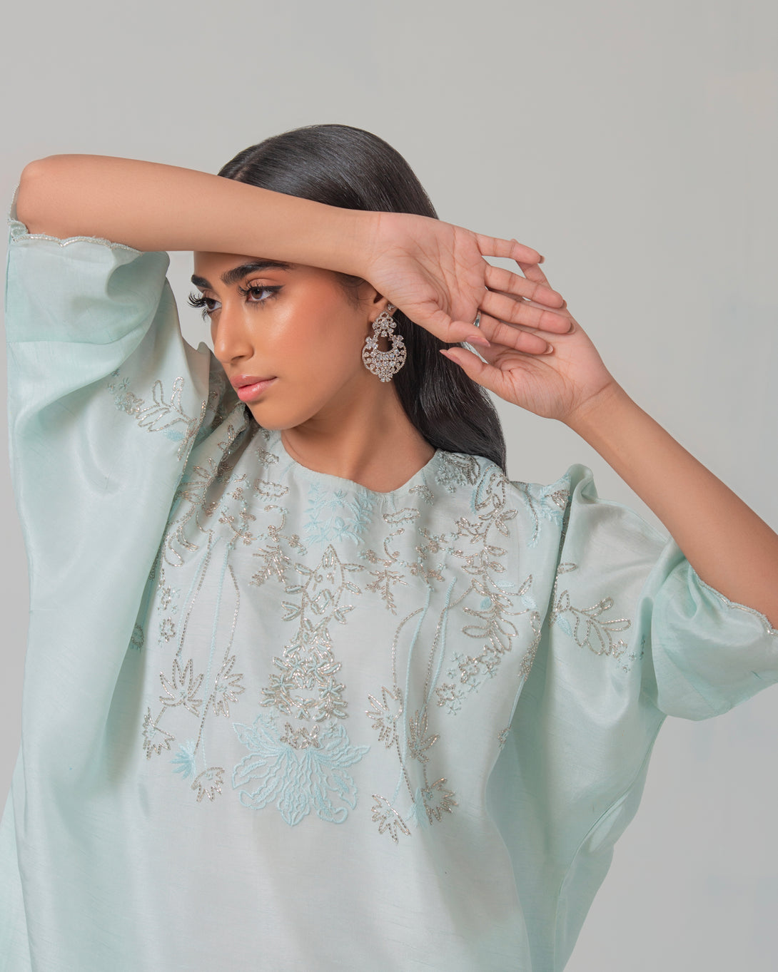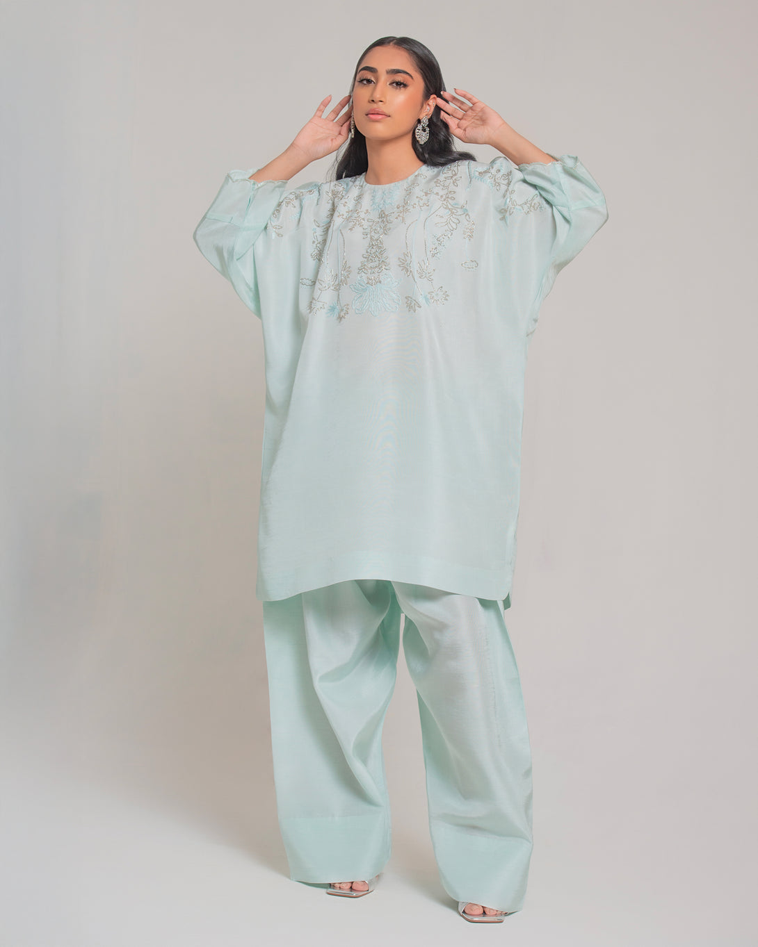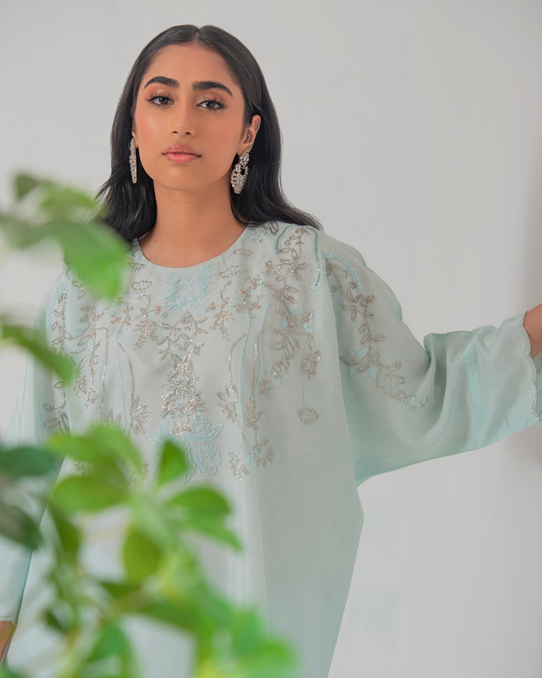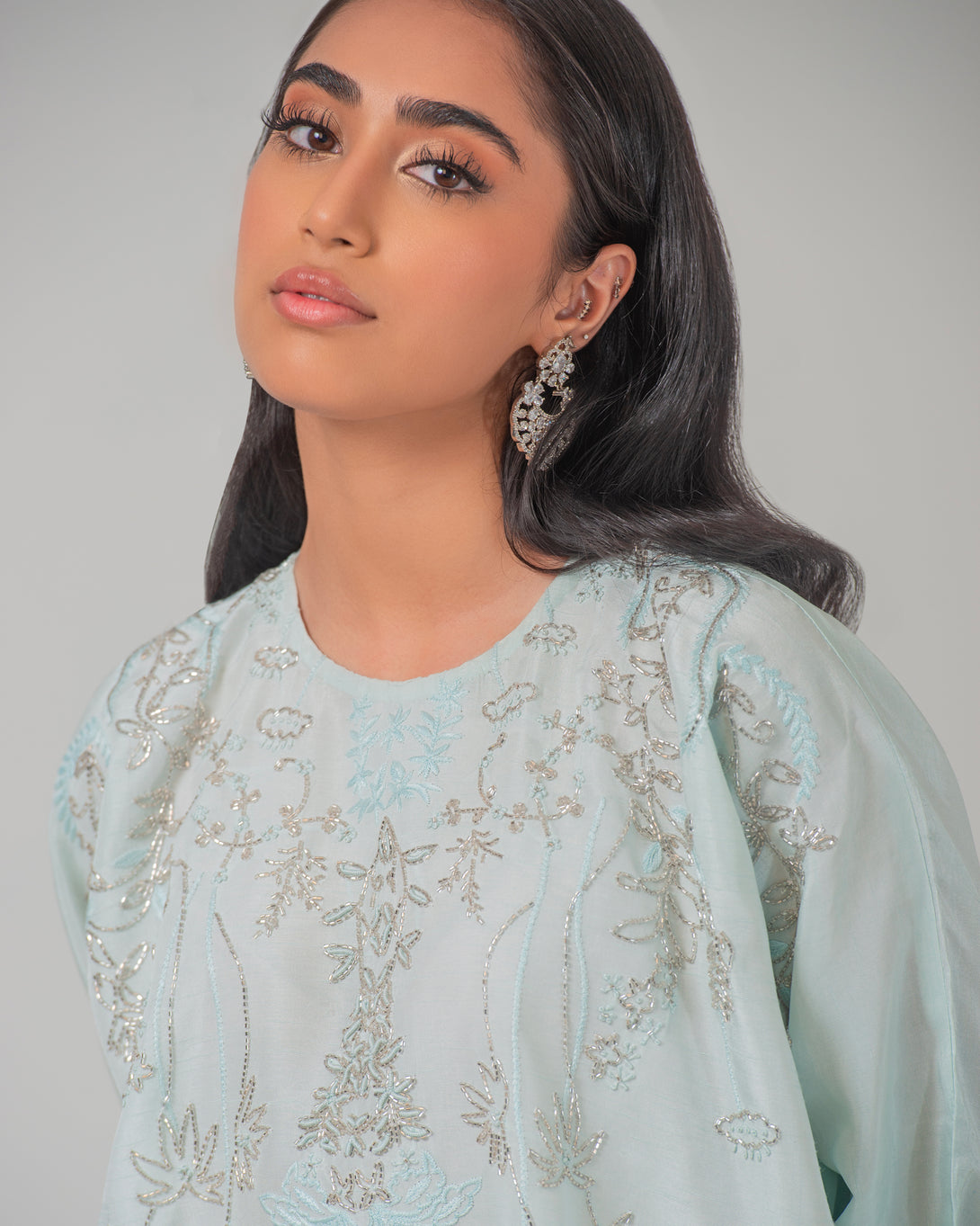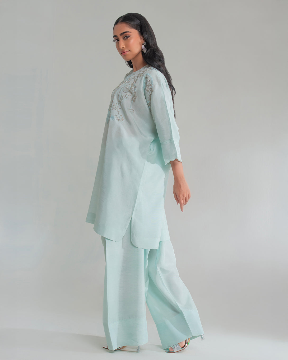 Mykonos Light Blue Embroidered Raw Silk 2-Piece Suit with Resham & Cutdana