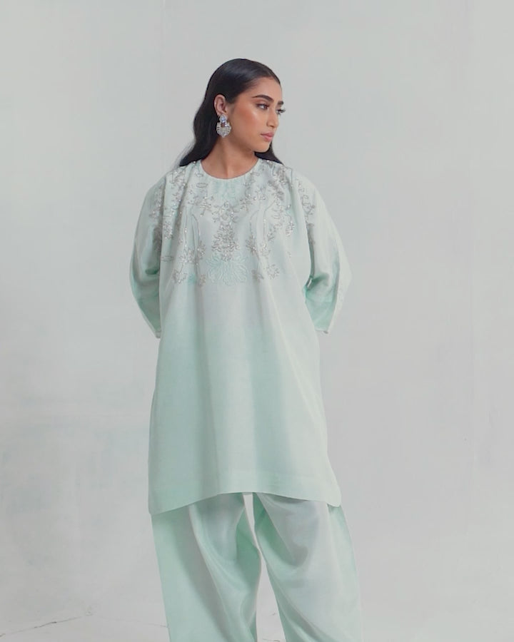 Designed for both comfort and style, this embroidered raw silk suit is a versatile addition to your collection. Perfect for daytime events, semi-formal gatherings, relaxed festive occasions, or sophisticated casual wear.
